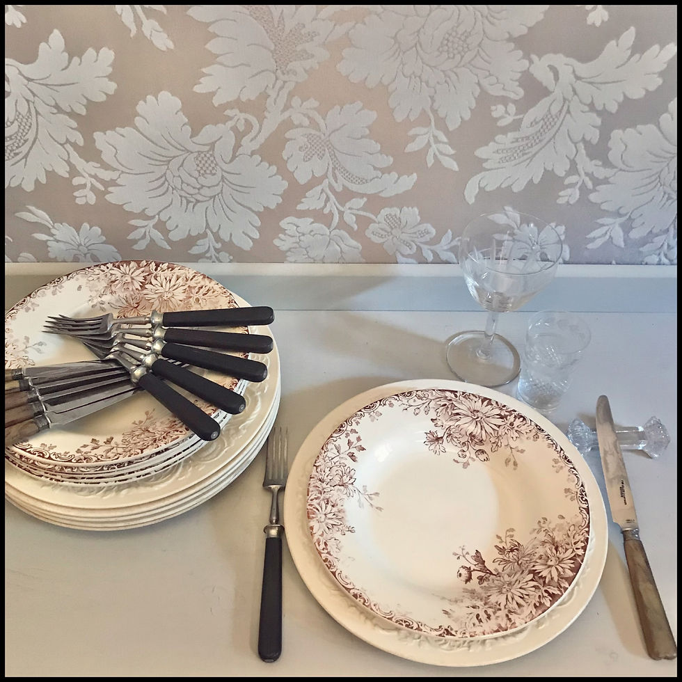 Créer une table unique, transformer un simple dîner en une fête. Les sets proposés sont des assemblage. J'adore mixer des pièces chinées entre elles et les marier. Céramique, poterie, verre et cristal ; tout peut fonctionner ensemble pour autant qu'un thème soit trouvé.